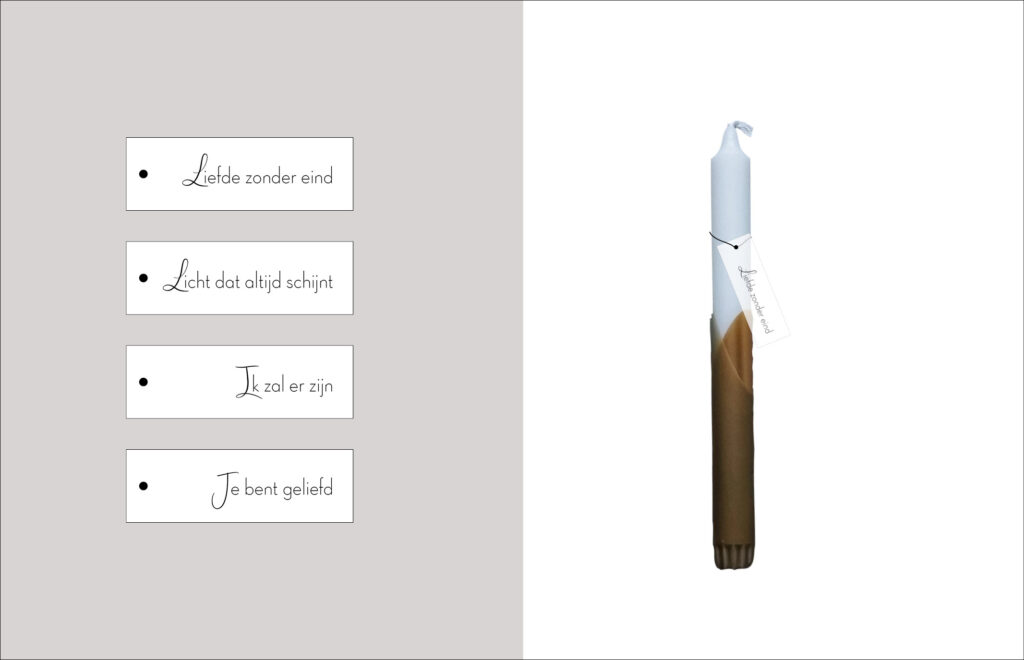 Boekhandel de Rank wilde iets persoonlijks en unieks maken van de producten die zij verkopen. Rond kerst verkopen zij veel kaarsen, amber blokjes en stukjes zeep. Om deze cadeautjes net wat extra’s te geven, wilden ze labeltjes met tekst laten maken. We gingen een uurtje om de tafel en brainstormden over de teksten en het materiaal. Studio Stien had verschillende stalen van papiersoorten bij zich, wat het keuzeproces versnelde. Na een productieve brainstormsessie ging Stieneke het ontwerp maken en, zodra het naar wens was, laten produceren.