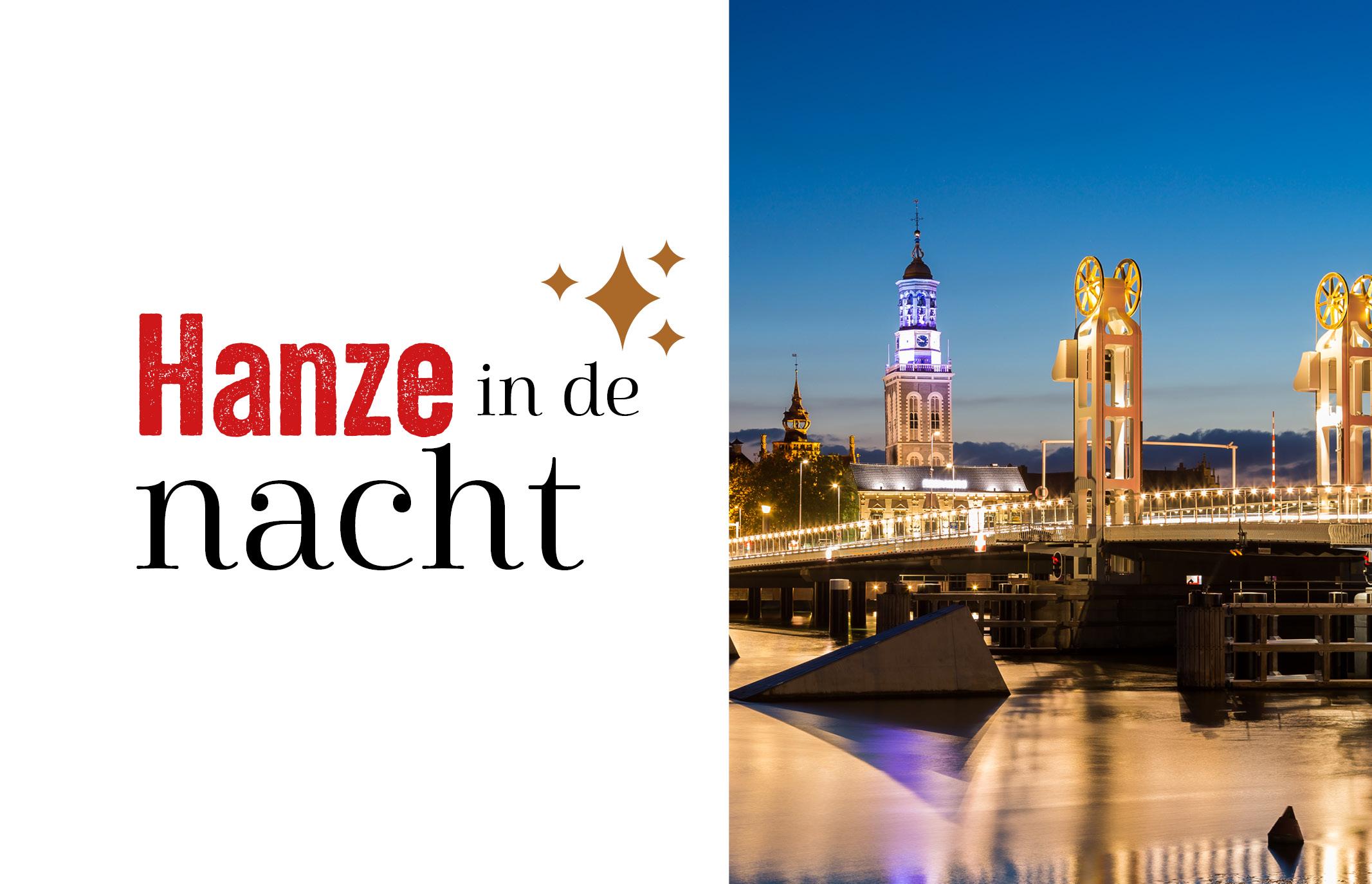 Een concept ontwikkelen voor het festival Hanze in de Nacht. Van logo tot posters en van t-shirts tot het complete programma. Het ontwerpen van dit concept startte met het beeldmerk en kleuren voor dit evenement. Van daaruit werden alle uitingen ontworpen. Het logo moest basic worden omdat er veel informatie verwerkt moest worden op zowel de posters als het programma. De sterretjes maakten het geheel als uit het sprookje Duizend-en-één nacht. Dit kwam ook telkens weer terug. Zowel in het geleverde drukwerk als in de online uitingen waar we templates voor gemaakt hebben.